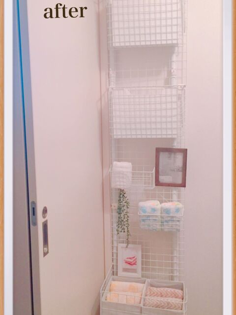 タオル収納 突っ張り棒とワイヤーネットで壁面収納 暮らしニスタ